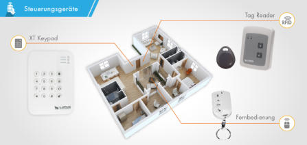 • Alarmanlagenset: XT1 Zentrale, das XT1 Keypad, 2 Fenster-/Türkontakte und einen