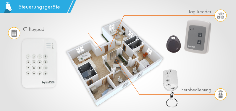 Status der Fenster und Türen oder rufen Sie die Live-Bilder Ihrer LUPUS Kameras oder